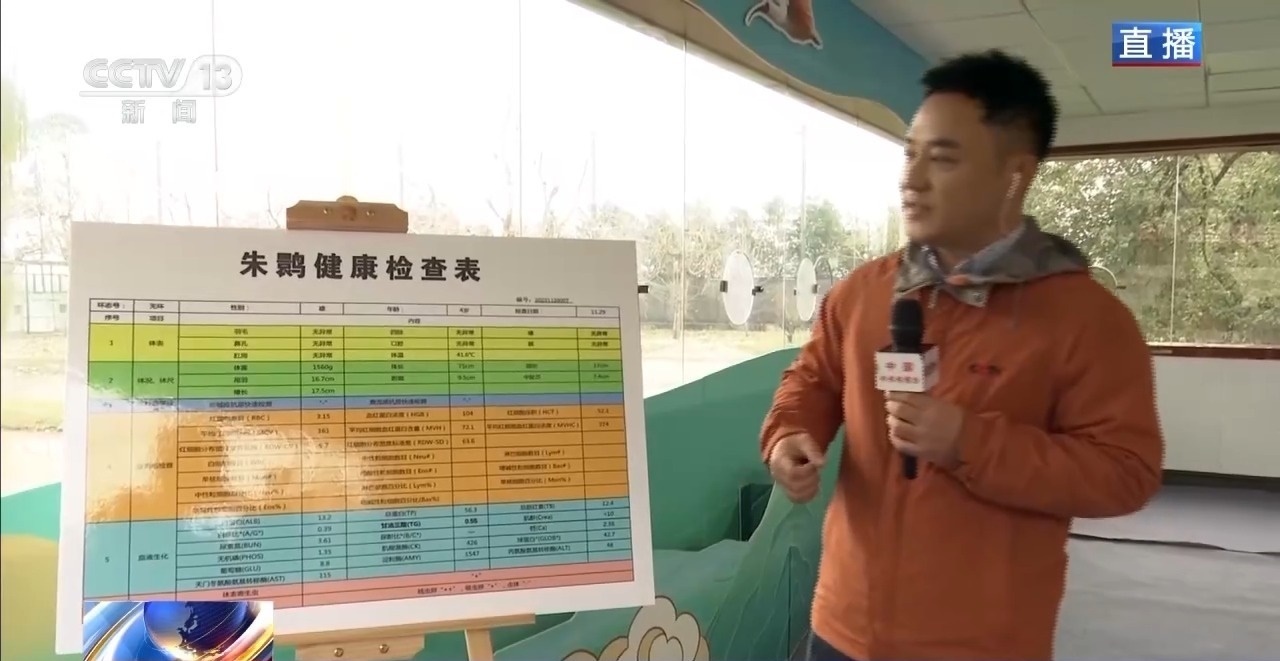 另一邊,保健醫(yī)生們正在給朱鹮抽血。完成抽血之后,朱鹮的血樣會(huì)通過(guò)機(jī)器完成血常規(guī)、生化指標(biāo)和寄生蟲檢測(cè)等50多項(xiàng)檢查,最終形成一張健康檢查表,相當(dāng)于我們的體檢。這樣精確的健康監(jiān)測(cè),就是保證朱鹮種源質(zhì)量的依據(jù)。