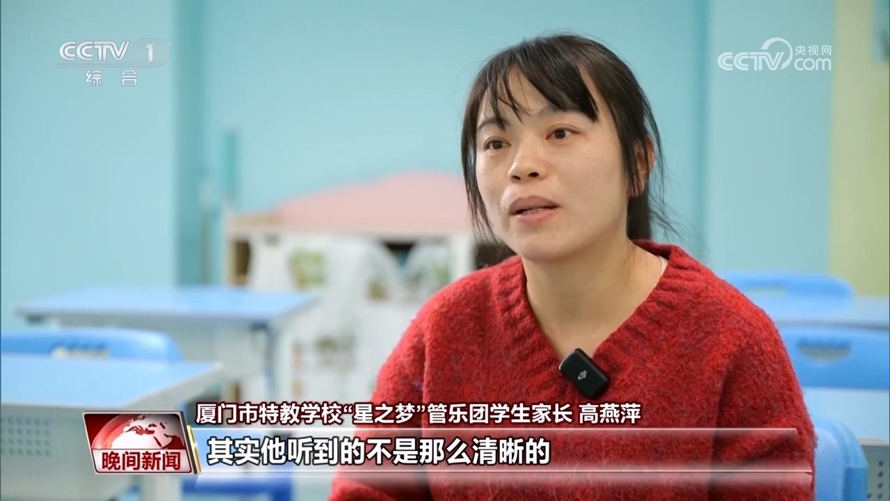 廈門市特教學?!靶侵畨簟惫軜穲F學生家長 高燕萍:其實他聽到的不是那么清晰的,但是他會覺得這個聲音很美,他用手語告訴我,他覺得很美。