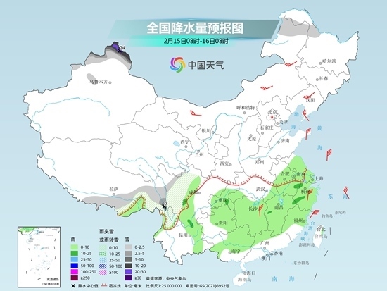 后天,內(nèi)蒙古東北部、黑龍江西北部、新疆北部、西藏南部和東部、川西高原、云南西北部等地部分地區(qū)有小到中雪或雨夾雪,其中,新疆北部、云南西北部等地部分地區(qū)有大到暴雪,局地有大暴雪。江淮大部、江南、西南地區(qū)東部、云南東部、華南北部和西部等地部分地區(qū)有小到中雨。