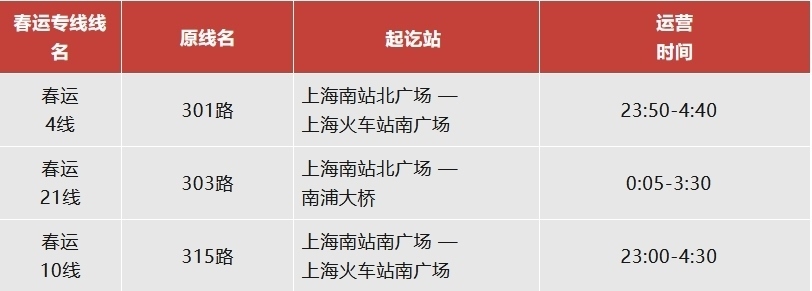 注:上海南站春運專線運營日期為2月14日至3月5日。