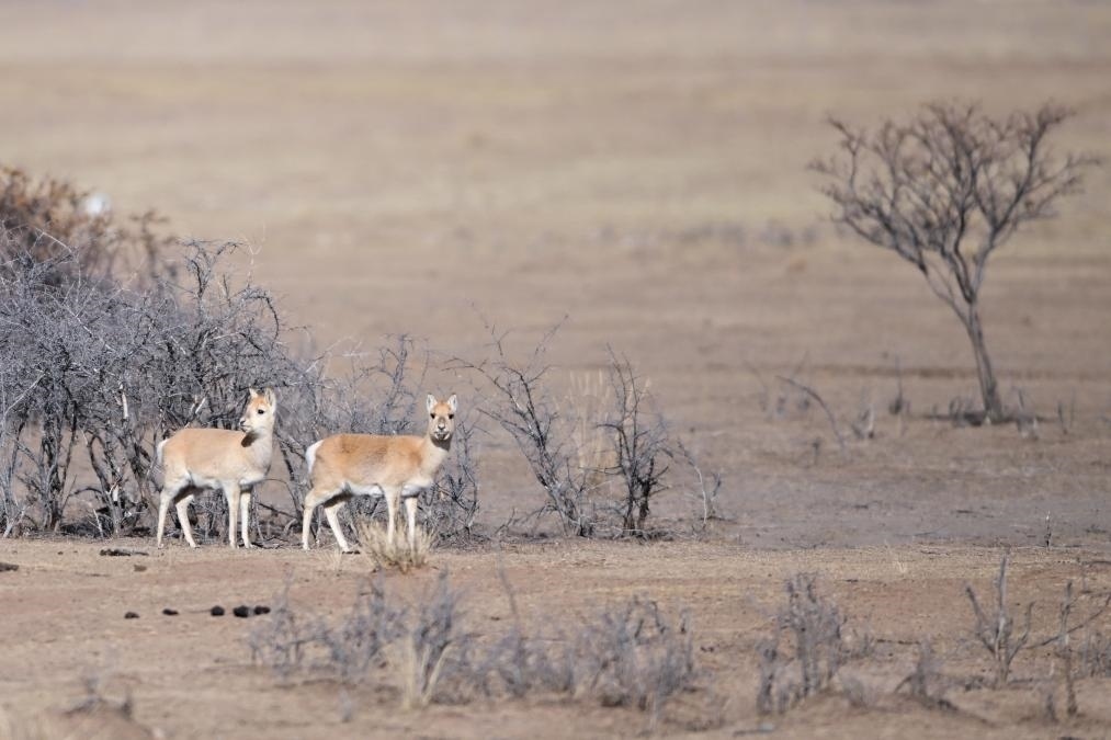 1月24日,青海省海北藏族自治州剛察縣哈爾蓋鎮(zhèn)境內(nèi)的草原上的普氏原羚。新華社記者 張龍 攝