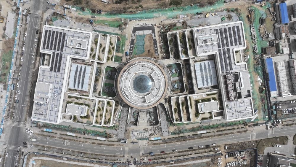 ↑這是雄安新區(qū)商務(wù)服務(wù)中心(3月30日攝,無人機(jī)照片)。
