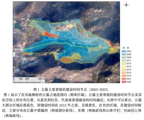 位于青島城陽區(qū)夏莊街道華陰社區(qū)太平山的太平陵公墓,地處嶗山山脈西麓,在嶗山風(fēng)景區(qū)保護(hù)范圍內(nèi)。該公墓是1996年經(jīng)民政部門審批的經(jīng)營(yíng)性公墓,合法審批面積為87.53畝。遙感衛(wèi)星影像分析顯示,該公墓大面積非法擴(kuò)建已持續(xù)多年,存在毀林挖山建墓地的情況。