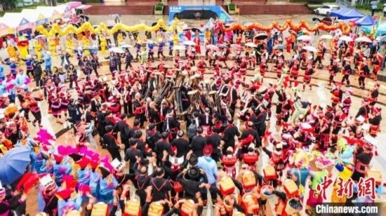游客觀看瑤族民俗表演。蔡思亮 攝