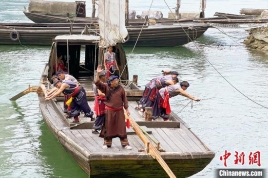 峽江號(hào)子高亢回蕩,土家山歌婉轉(zhuǎn)悠揚(yáng),吊腳樓點(diǎn)綴于青山綠水之間,漁船靜泊于碧波清溪之中……三峽人家猶如一座“活態(tài)”的非遺博物館,吸引人們?cè)谏剿g尋找非遺的故事。