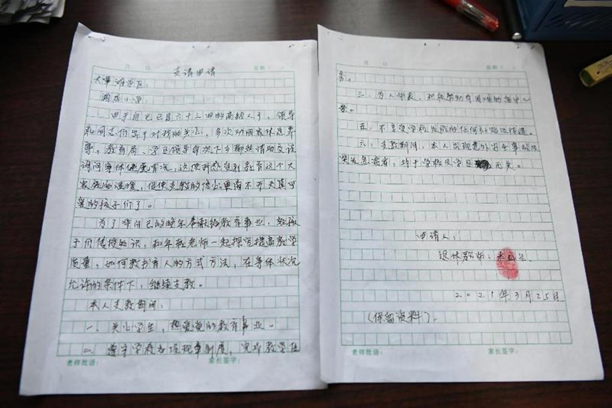 本科生的退休返崗申請(qǐng)書(圖片來(lái)源:新甘肅)