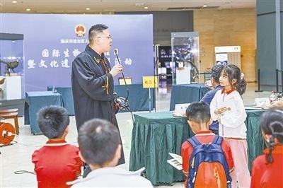 5月21日,重慶市渝北區(qū)人民法院和重慶自然博物館聯(lián)合開展“國際生物多樣性日”法治科普教育活動。當天,30余名小學生及部分人大代表受邀參觀珍貴動物標本庫房,并現(xiàn)場旁聽一起非法狩獵罪案件庭審,三名捕獵“野味”者被當庭判處刑罰。