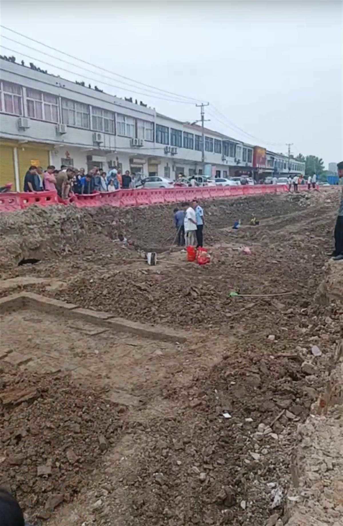 6月6日,事發(fā)現(xiàn)場(chǎng)附近一位商戶告訴極目新聞?dòng)浾?,發(fā)現(xiàn)古墓的地點(diǎn)是一處修路的工地,此前該地上方建了一排民房。去年,這排民房被拆除,準(zhǔn)備修建一條道路。6月5日,施工人員在這塊工地上施工時(shí),在地下發(fā)現(xiàn)了幾座古墓。隨后,民警和考古人員都到現(xiàn)場(chǎng),對(duì)現(xiàn)場(chǎng)進(jìn)行保護(hù)和處置。到目前,考古人員已經(jīng)挖出三個(gè)罐子和兩面銅鏡。