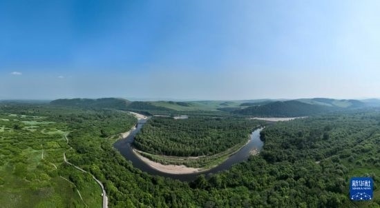 7月2日拍攝的額爾古納市額爾古納國(guó)家濕地公園(無(wú)人機(jī)全景照片)。