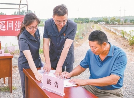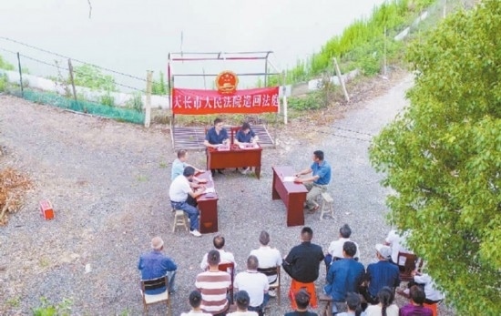 近日,安徽省天長市人民法院秦欄人民法庭法官來到東風村螃蟹養(yǎng)殖基地,公開開庭審理一起農(nóng)業(yè)承包合同糾紛案。法官經(jīng)過現(xiàn)場勘查、細心調(diào)解,當場化解糾紛,養(yǎng)殖戶投放的500斤蟹苗有了著落,村委會減少了經(jīng)濟損失。