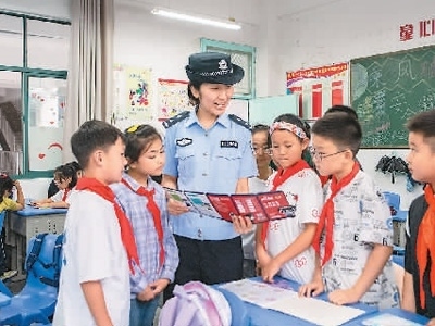 安徽省蕪湖市公安局繁昌分局城關(guān)派出所民警給小學(xué)生普及網(wǎng)絡(luò)安全知識(shí)。肖本祥攝(人民視覺)