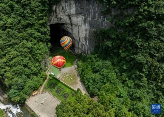 8月4日拍攝的騰龍洞景區(qū)(無(wú)人機(jī)照片)。