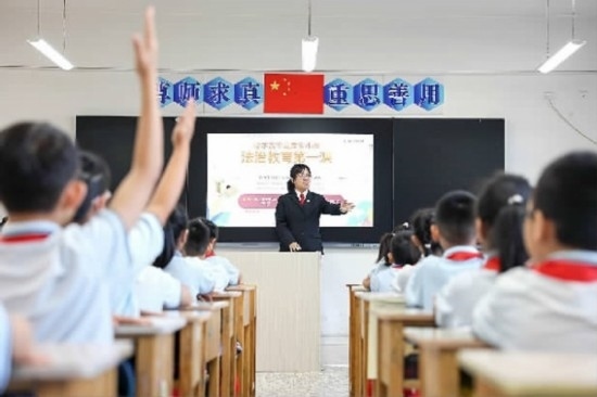 近日,吉林省四平市鐵西區(qū)人民法院依托法治副校長(zhǎng)工作機(jī)制,攜手四平市陽(yáng)光實(shí)驗(yàn)小學(xué)舉辦了一場(chǎng)生動(dòng)的“開學(xué)第一課”,通過(guò)與同學(xué)們互動(dòng)問(wèn)答、角色扮演等形式,為青少年健康成長(zhǎng)營(yíng)造良好法治環(huán)境,不斷提升青少年群體的法治素養(yǎng)。圖為法官與同學(xué)們?cè)谡n堂上進(jìn)行互動(dòng)交流。(記者 孫兵 通訊員 任青陽(yáng))