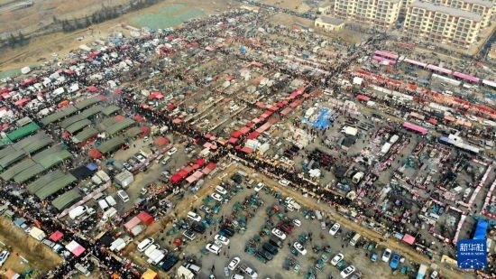 這是位于青島西海岸新區(qū)的泊里大集現(xiàn)場(1月18日攝,無人機照片)。