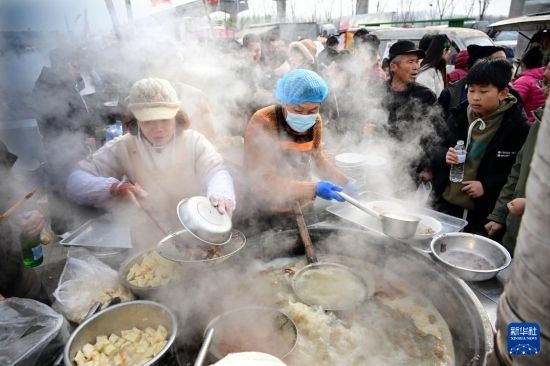 1月18日,泊里大集一個羊肉湯攤位前排起長隊。