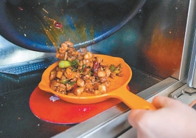 劉楊現(xiàn)場下單了一份干燒雙菇,炒好后,打開柜門的那一刻,香氣撲面而來?!翱隙ū任易约鹤龅暮贸?,比一些餐廳的味道也好?!眲钫f:“如果家中來客,炒3個(gè)菜帶回家,總共也就幾十元,比下館子劃算得多?!?/p>