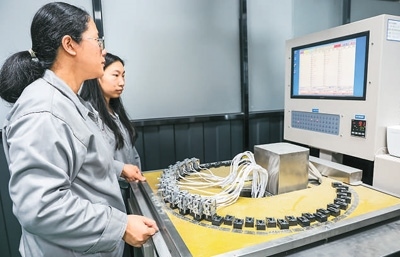 加強食品安全監(jiān)管,為冷鏈設(shè)備制造企業(yè)帶來了發(fā)展機(jī)遇。圖為西科冷鏈江門制造基地的產(chǎn)品實驗室工程師在進(jìn)行電子元件耐用性測試。