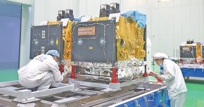 “吉林一號(hào)”寬幅衛(wèi)星總裝現(xiàn)場(chǎng)。