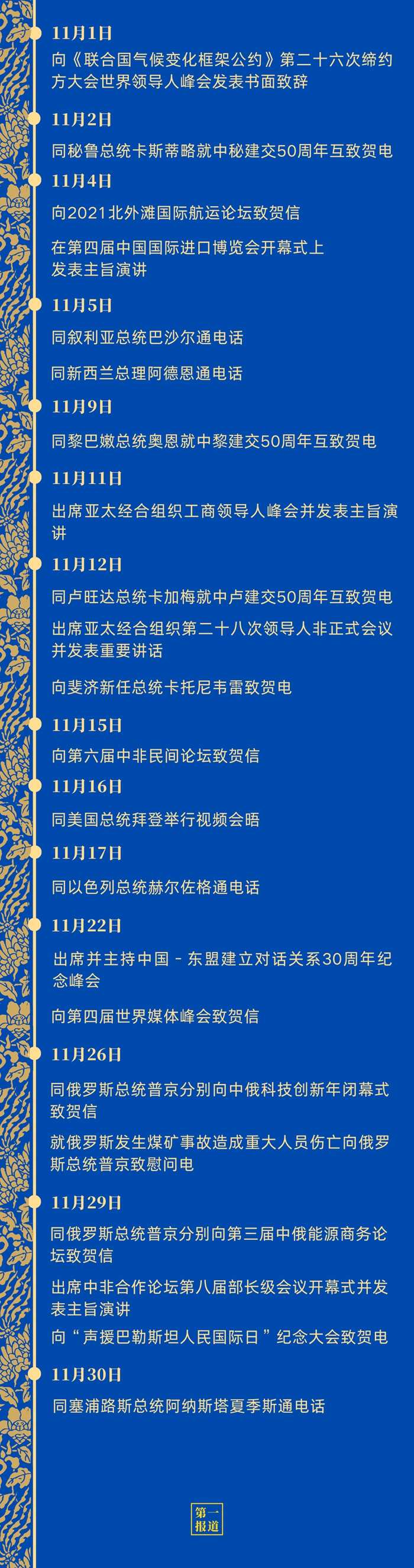 11月,中國元首外交活動豐富、頻密,在雙邊關系、多邊合作、全球發(fā)展、共建家園四方面彰顯強大推動力——