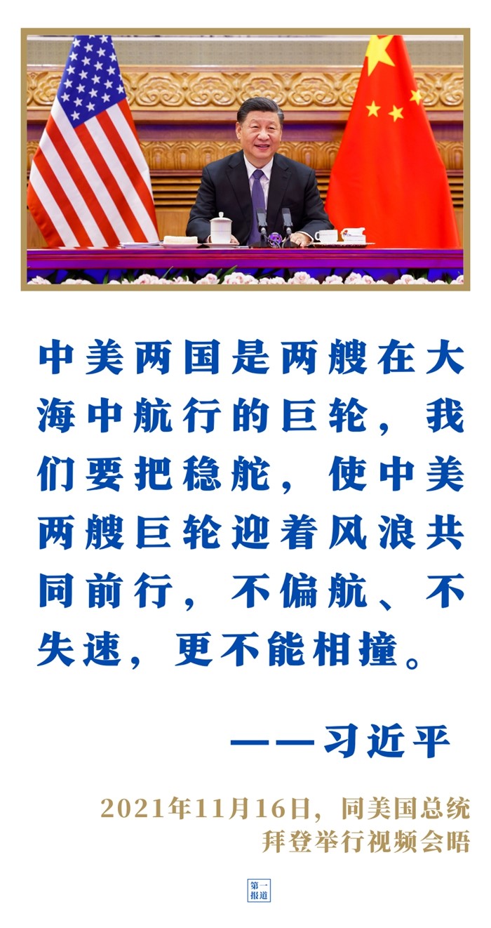 習近平主席同美國總統(tǒng)拜登舉行視頻會晤時,提出中美相互尊重、和平共處、合作共贏三點原則和應當著力推動的四方面優(yōu)先事項,為中美關系的未來走向明確了基本框架。