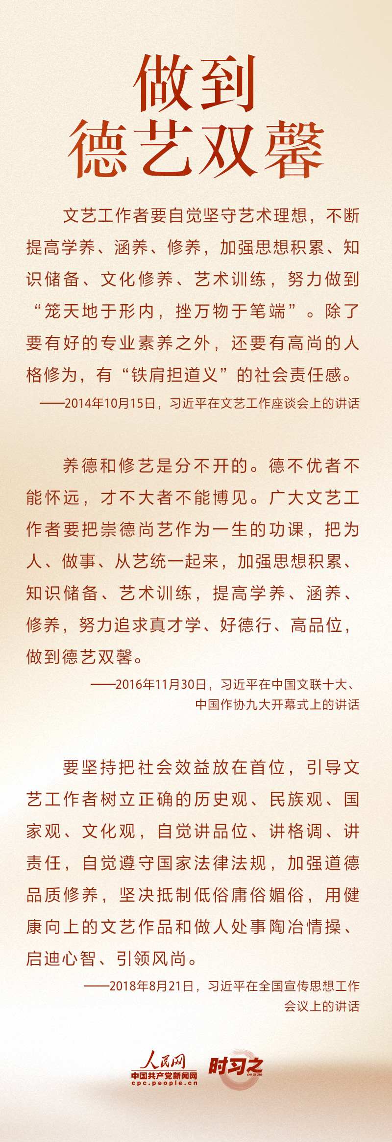 文運同國運相牽,文脈同國脈相連。新時代文藝工作者承擔(dān)著記錄新時代、書寫新時代、謳歌新時代的重大使命?!拔乃囀氰T造靈魂的工程,文藝工作者是靈魂的工程師?!秉h的十八大以來,習(xí)近平不斷激勵文藝工作者不辜負(fù)時代召喚、不辜負(fù)人民期待,以德服人、以文化人。