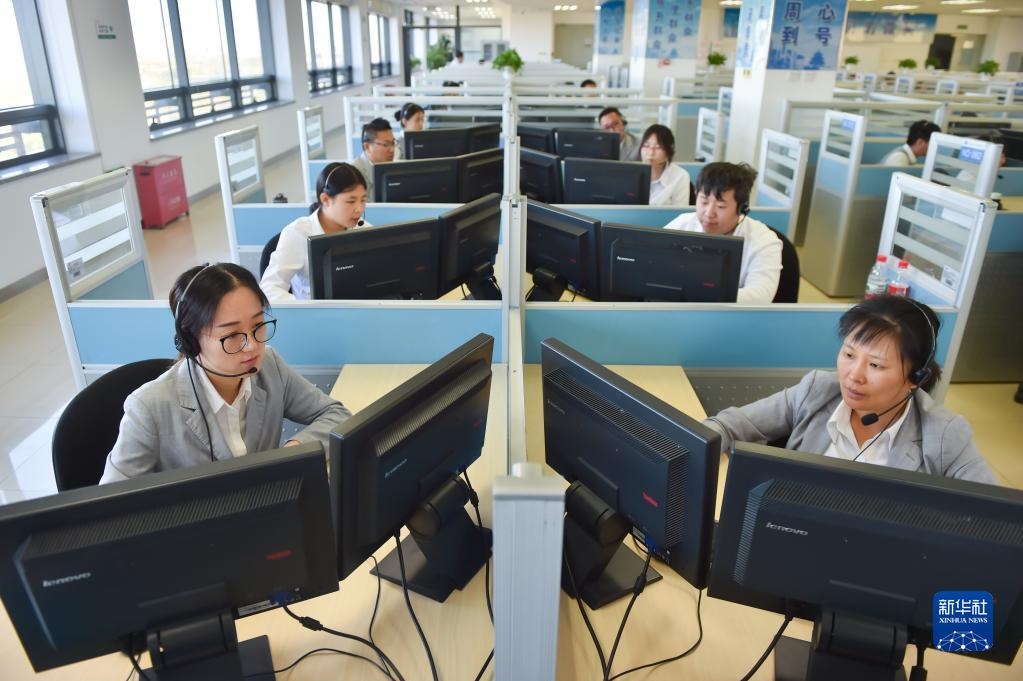 在位于北京亦莊的12345市民熱線話務(wù)大廳,工作人員接聽熱線電話(2019年11月13日攝)。 新華社記者 彭子洋 攝