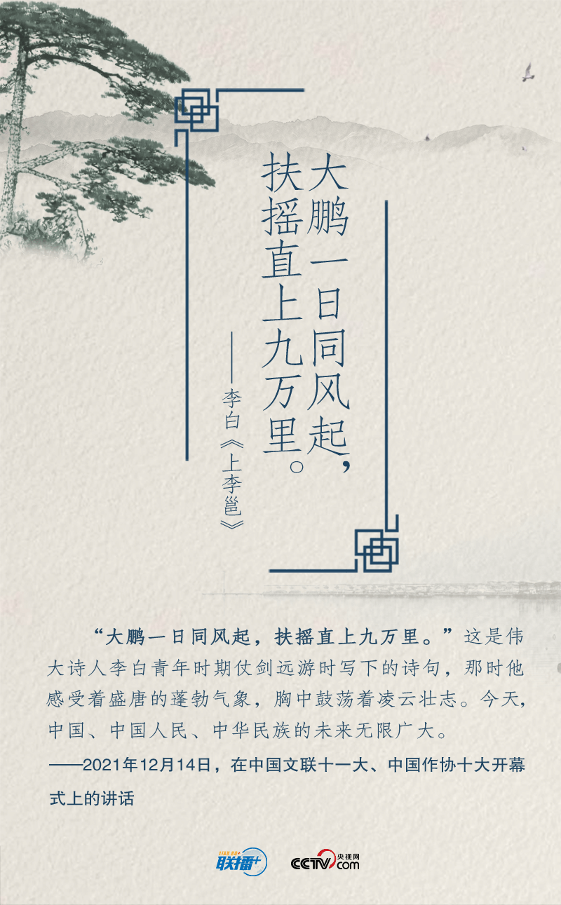 黨的十八大以來(lái),在實(shí)現(xiàn)中華民族偉大復(fù)興中國(guó)夢(mèng)的征途中,習(xí)近平總書記就“奮斗”作出一系列重要論述。以“長(zhǎng)風(fēng)破浪會(huì)有時(shí)”展望中華民族的明天,用“不畏浮云遮望眼”號(hào)召中華兒女?dāng)]起袖子加油干……總書記多次精妙運(yùn)用經(jīng)典詩(shī)詞,凝聚新時(shí)代奮斗力量。央視網(wǎng)《聯(lián)播+》特進(jìn)行梳理,與您一起領(lǐng)悟總書記的“奮斗觀”,讓我們?cè)谛抡鞒讨泄餐瑠^斗。