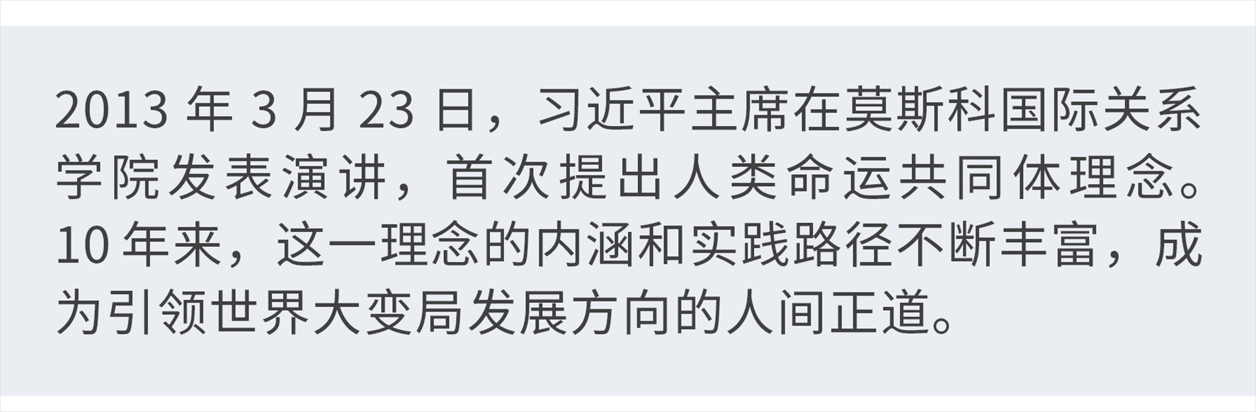 “我們兩國要永做好鄰居、好朋友、好伙伴”。10年前,當選國家主席后首次出訪,習近平在莫斯科國際關(guān)系學院發(fā)表演講時這樣說道。也正是在這次演講中,習近平主席首次提出人類命運共同體理念。