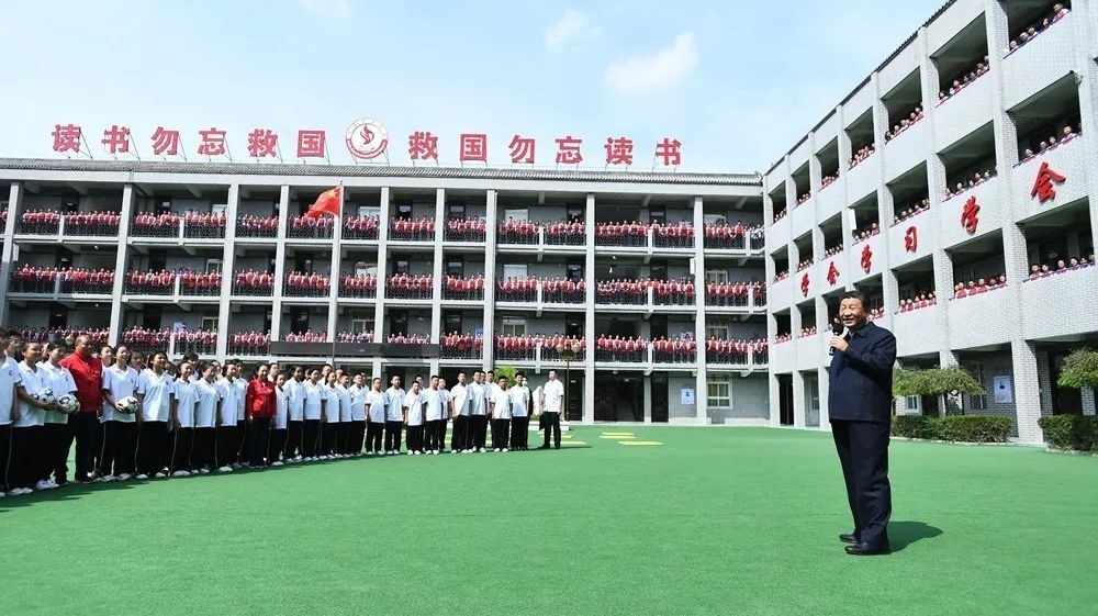 2021年9月14日,在陜西榆林市綏德實(shí)驗(yàn)中學(xué)考察時(shí),習(xí)近平總書記走進(jìn)教室、操場(chǎng),觀看同學(xué)們書法練習(xí)和體育鍛煉,同大家親切交流。他勉勵(lì)同學(xué)們:“真正做全面發(fā)展的人才,一步一步地走下去,最終都能成為對(duì)社會(huì)有用的人、國(guó)之棟梁?!薄暗轮求w美勞全面發(fā)展,字字千金,都是經(jīng)過(guò)多年總結(jié)摸索才得出來(lái)的。”