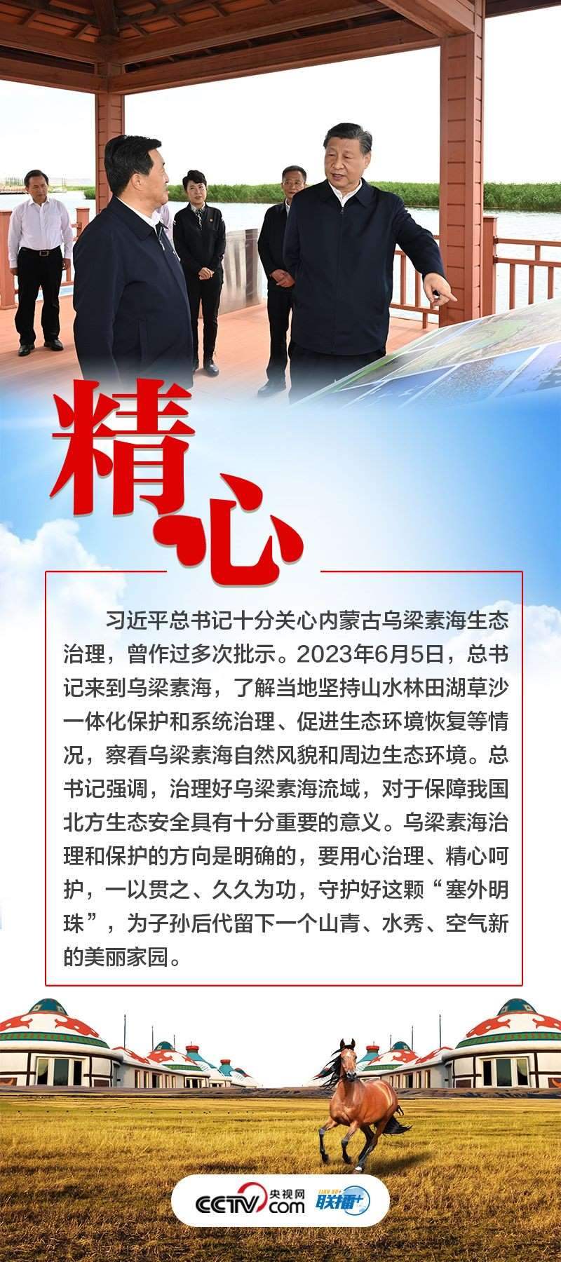 6月5日至6日,習(xí)近平總書記深入內(nèi)蒙古巴彥淖爾市的自然保護(hù)區(qū)、現(xiàn)代農(nóng)業(yè)示范園區(qū)、林場(chǎng)、水利部門等調(diào)研。黨的十八大以來,三次到內(nèi)蒙古考察、五次參加內(nèi)蒙古代表團(tuán)審議,傳遞著習(xí)近平總書記對(duì)這片熱土的牽掛與惦念。央視網(wǎng)《聯(lián)播+》梳理總書記與內(nèi)蒙古的故事,與您一起體會(huì)這些故事背后的“心”意。