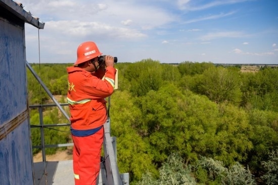 6月5日,臨河區(qū)國(guó)營(yíng)新華林場(chǎng)護(hù)林員在開(kāi)展巡護(hù)工作。新華社記者 李志鵬 攝