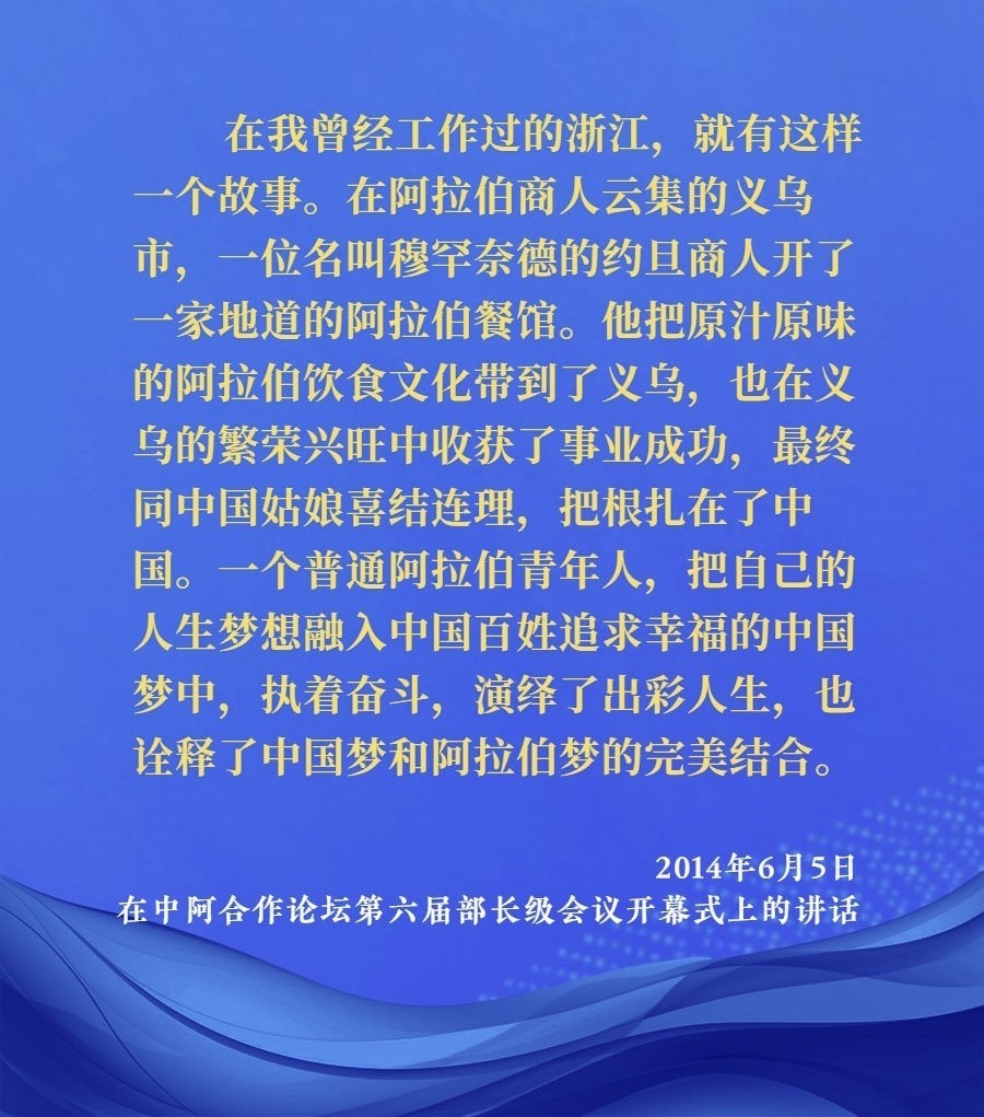 2014年6月5日,中阿合作論壇第六屆部長(zhǎng)級(jí)會(huì)議在北京人民大會(huì)堂開(kāi)幕。習(xí)近平出席開(kāi)幕式并發(fā)表題為《弘揚(yáng)絲路精神,深化中阿合作》的講話(huà)。
