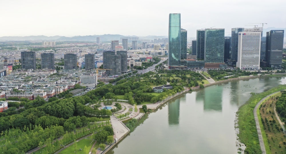 義烏國(guó)際商貿(mào)城與金融商務(wù)區(qū)。