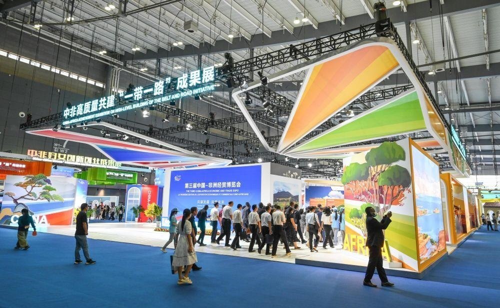 △2023年6月29日,中國(guó)長(zhǎng)沙國(guó)際會(huì)展中心,第三屆中非經(jīng)貿(mào)博覽會(huì)參會(huì)嘉賓參觀中非高質(zhì)量共建“一帶一路”成果展。
