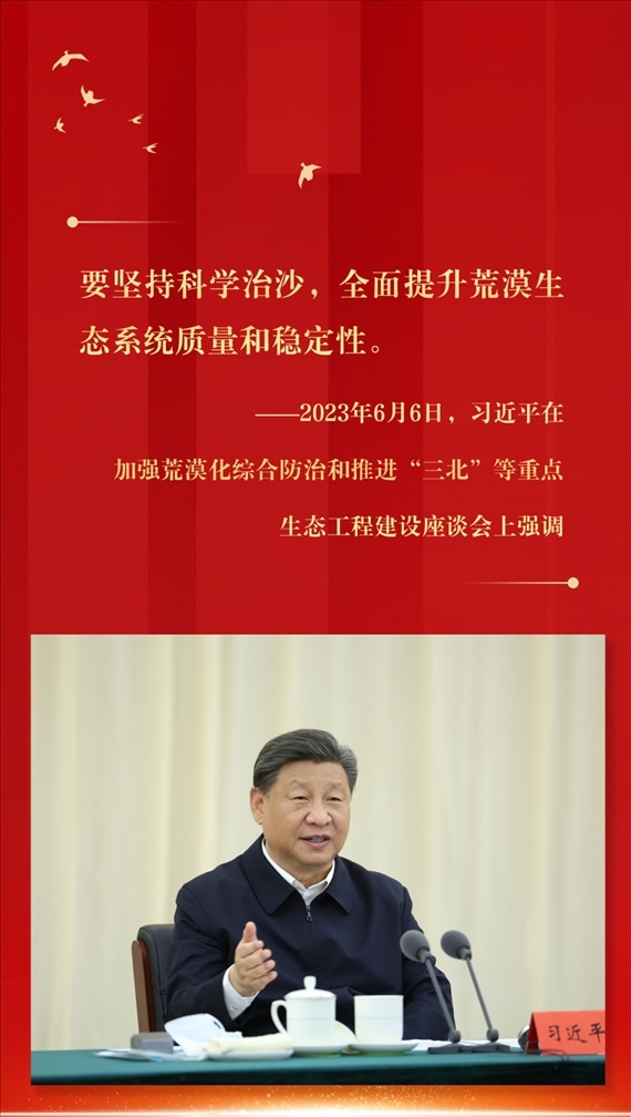 2023年6月5日至6日,習(xí)近平在內(nèi)蒙古巴彥淖爾考察,并主持召開加強(qiáng)荒漠化綜合防治和推進(jìn)“三北”等重點生態(tài)工程建設(shè)座談會。這是6日上午,習(xí)近平在臨河區(qū)國營新華林場考察。