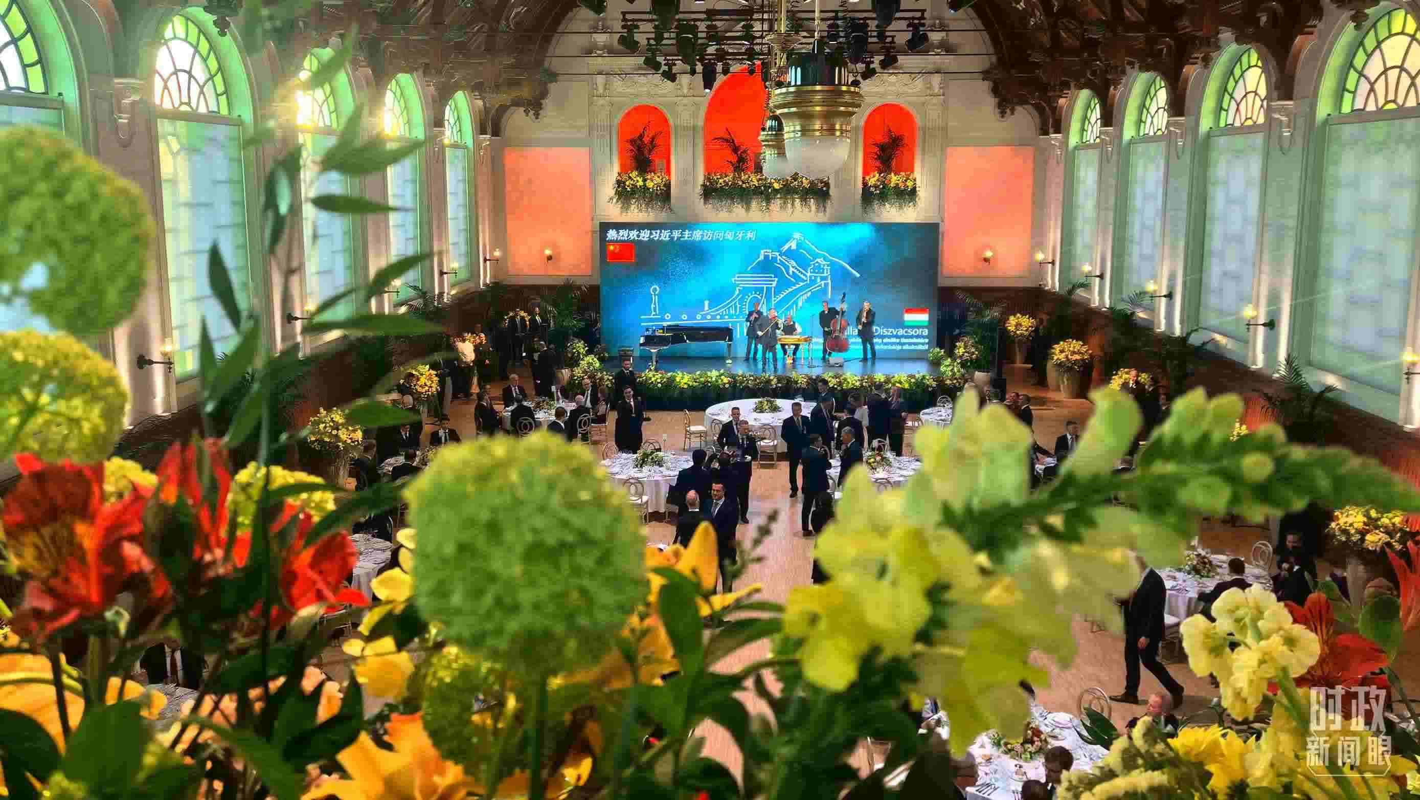 △歡迎宴會(huì)現(xiàn)場(chǎng)花團(tuán)錦簇。(總臺(tái)央視記者楊波拍攝)