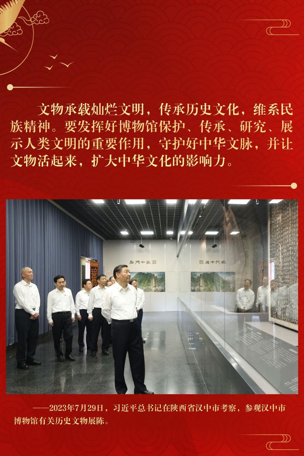 多年來,習近平總書記始終心系文化傳承發(fā)展,在地方考察期間多次調(diào)研古城老街、博物館等歷史文化地標,對歷史文化遺產(chǎn)保護和歷史文化傳承作出重要指示。