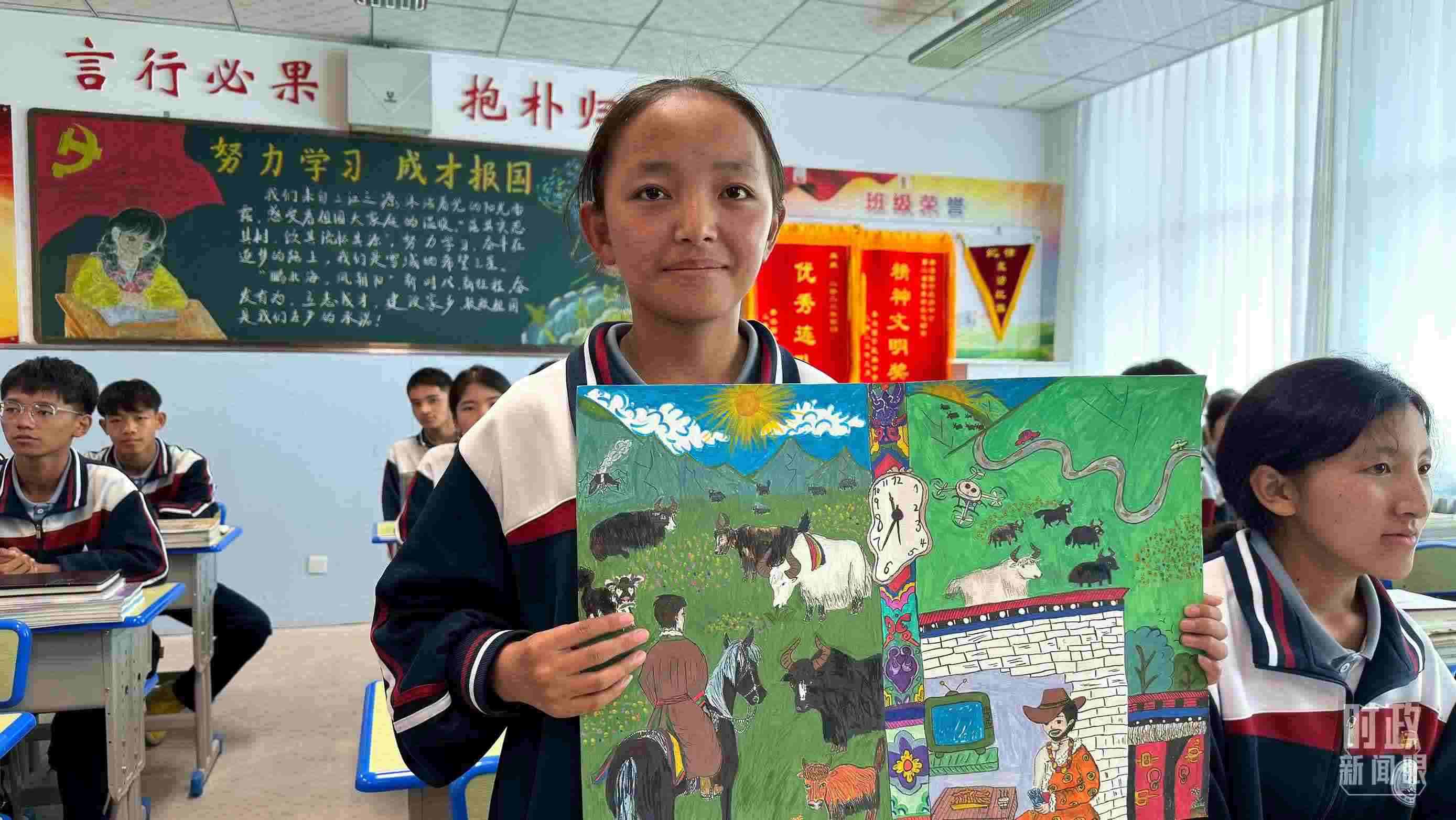 △果洛西寧民族中學(xué)高一(1)班的“新時代、新家鄉(xiāng)”主題思政課。(總臺央視記者許永松、國廣記者李晉拍攝)