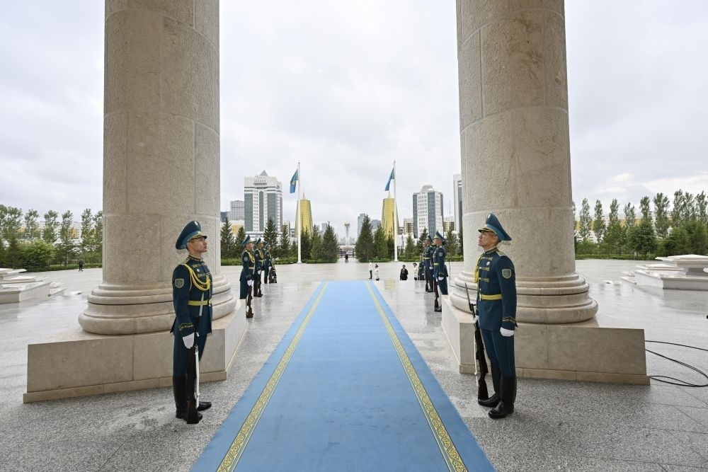 當(dāng)?shù)貢r(shí)間3日,國(guó)家主席習(xí)近平在阿斯塔納出席哈薩克斯坦總統(tǒng)托卡耶夫舉行的歡迎儀式。