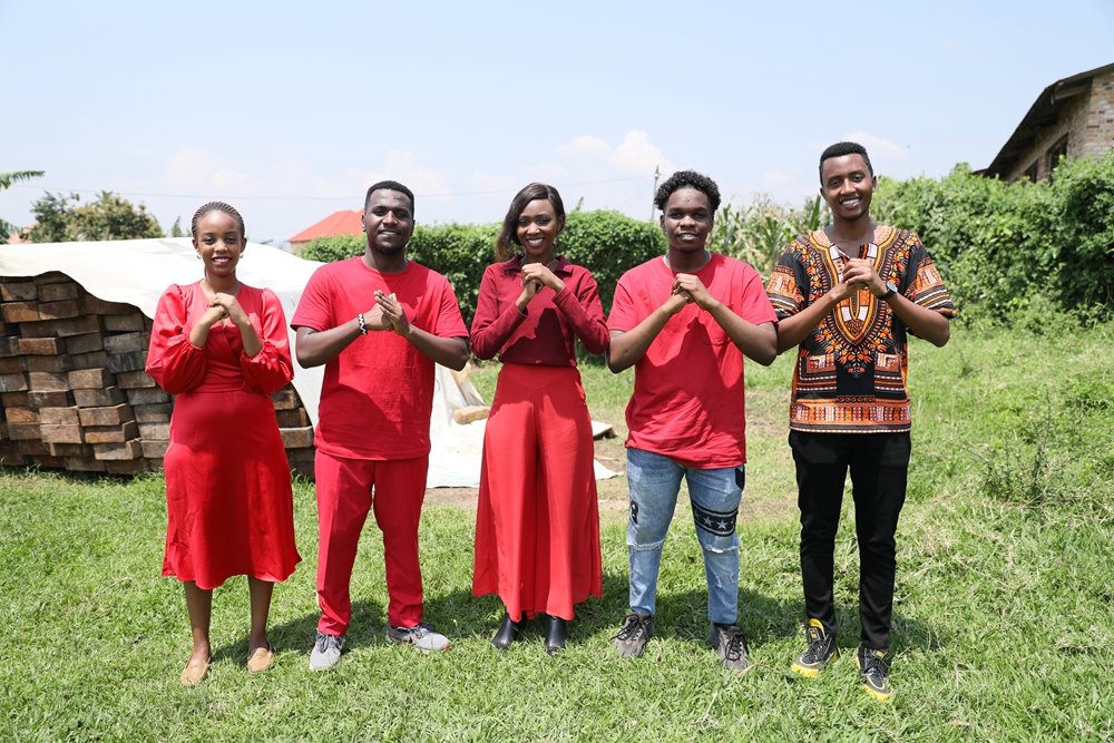 ??2024年2月7日,在盧旺達南方省卡莫尼地區(qū),盧旺達青年團隊成員向鏡頭前觀眾送上新春祝福。新華社發(fā)(黃萬晴 攝)