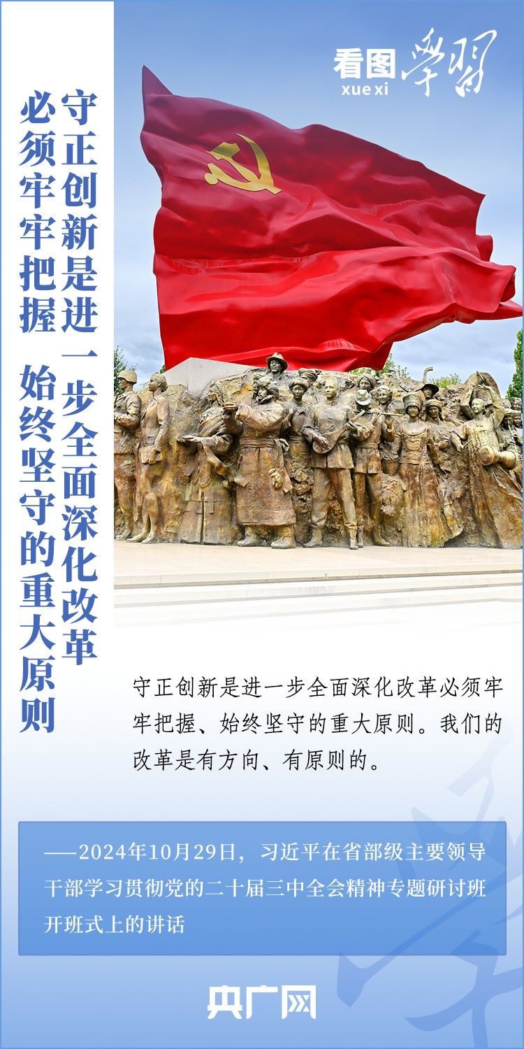 改革只有進行時,沒有完成時。10月29日,省部級主要領(lǐng)導干部學習貫徹黨的二十屆三中全會精神專題研討班在中央黨校(國家行政學院)開班。習近平總書記發(fā)表重要講話,就進一步全面深化改革的一系列重大問題進行深刻闡釋,強調(diào)要牢牢把握、始終堅守“守正創(chuàng)新”這一重大原則,把握好“四對關(guān)系”,奮力打開改革發(fā)展新天地。一起來學習!