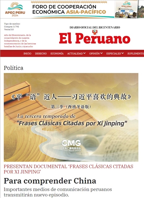 △《秘魯人報》刊發(fā)文章《<平“語”近人>專題片播出 更好地了解中國——秘魯各大媒體播出新一季片集》