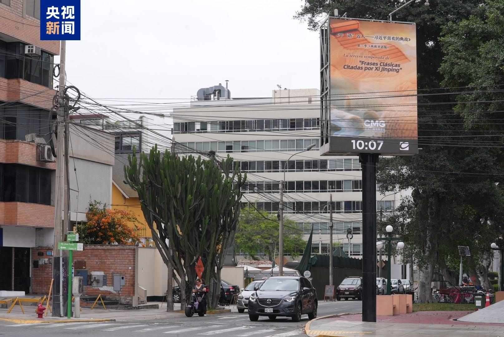 11月14日起,《平“語”近人——習近平喜歡的典故》第三季(西班牙語版)宣傳片在利馬地標建筑戶外大屏、利馬國際機場至市中心沿路戶外大屏滾動播放。秘魯各界人士對節(jié)目落地播出表示期待,認為這將為秘魯民眾了解中國領(lǐng)導人治國理政思想、領(lǐng)略中國式現(xiàn)代化的壯美宏闊打開思想之窗。
