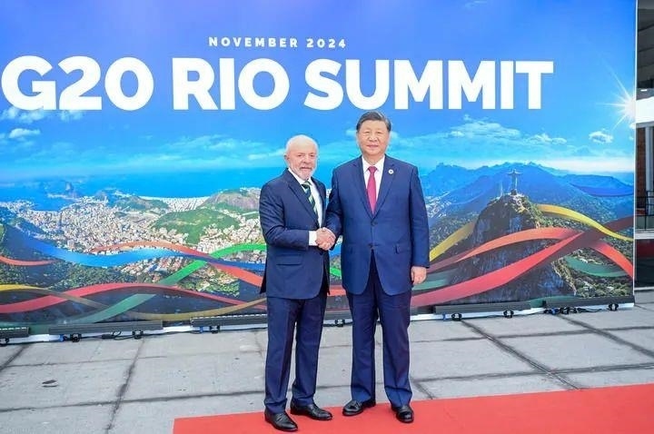在此次里約熱內(nèi)盧峰會上,習(xí)近平主席倡議二十國集團繼續(xù)做完善全球治理、推動歷史進步的力量,并提出完善全球經(jīng)濟治理、金融治理、貿(mào)易治理、數(shù)字治理、生態(tài)治理、安全治理等中國方案。