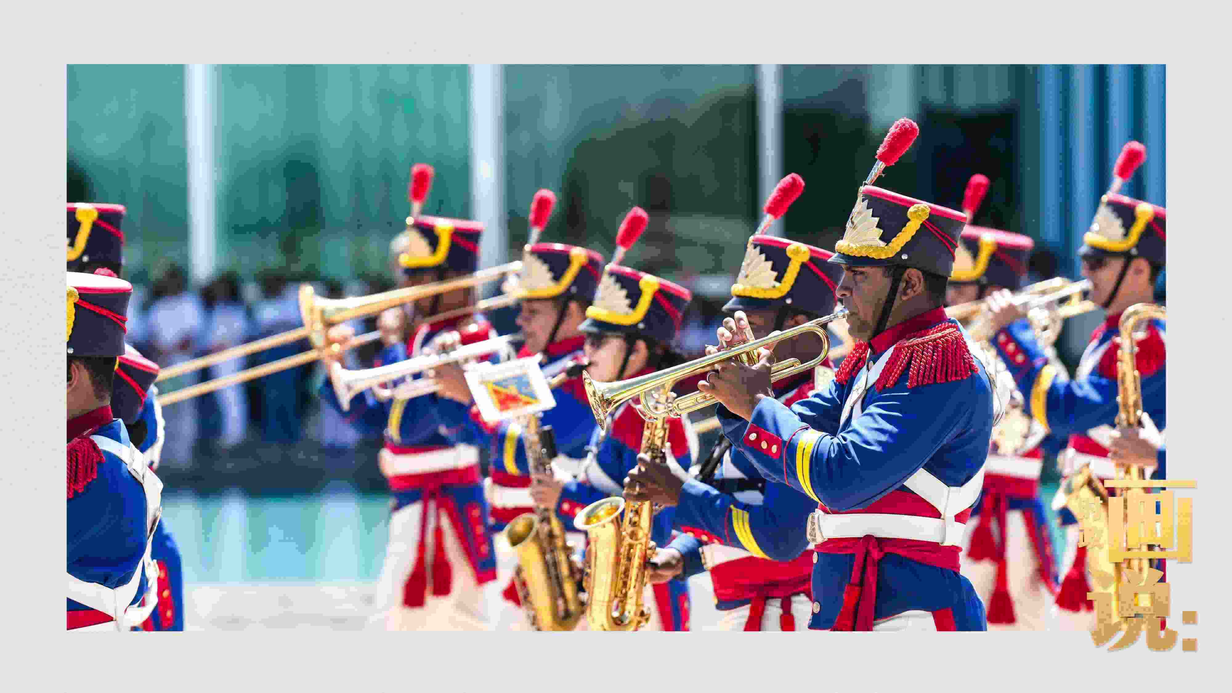騎兵護(hù)衛(wèi)習(xí)近平主席專車抵達(dá)儀式現(xiàn)場(chǎng),巴西藝術(shù)家用中文深情唱響中國(guó)經(jīng)典民歌《我的祖國(guó)》,現(xiàn)場(chǎng)氣氛隆重?zé)崃摇?/p>