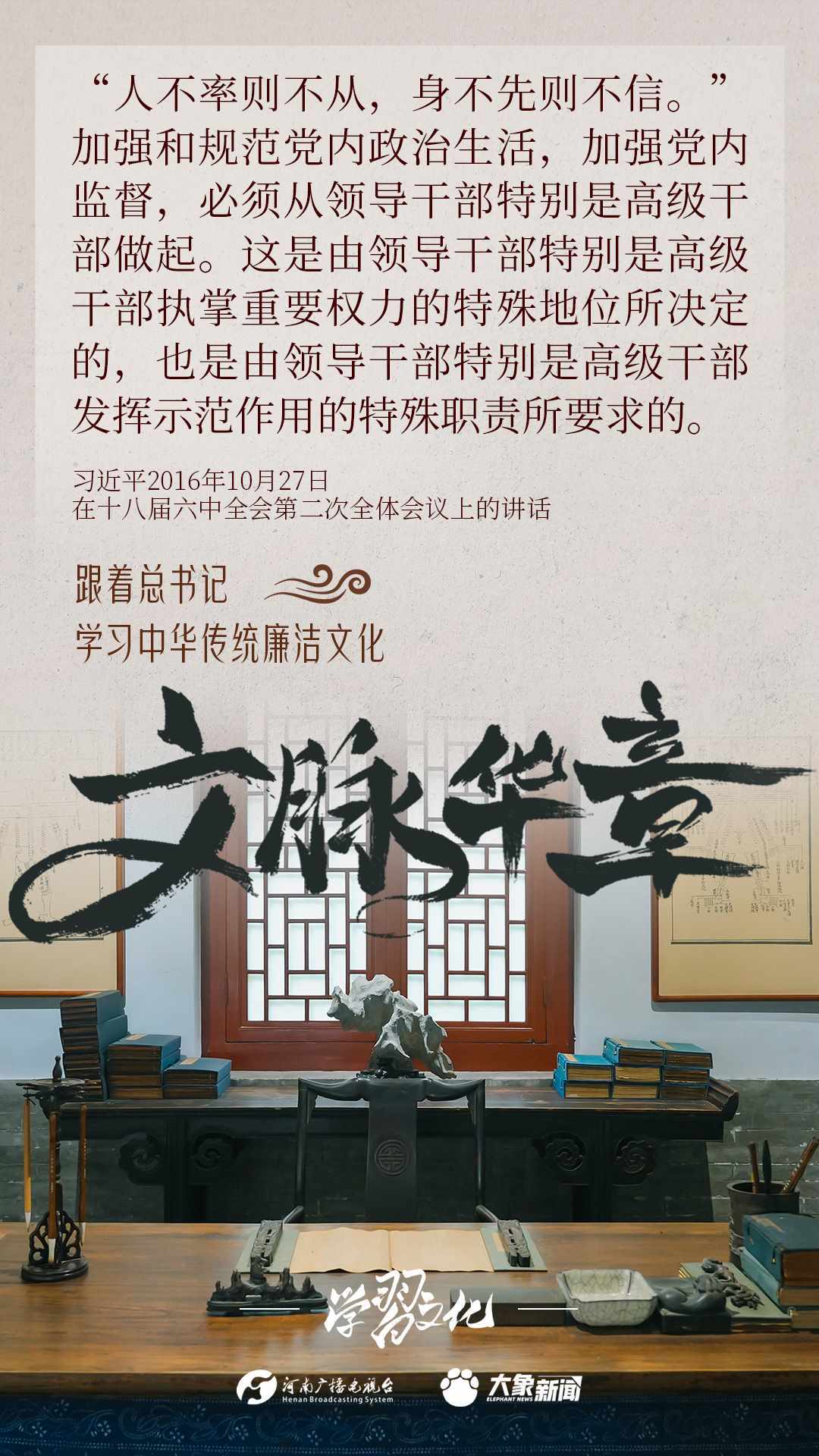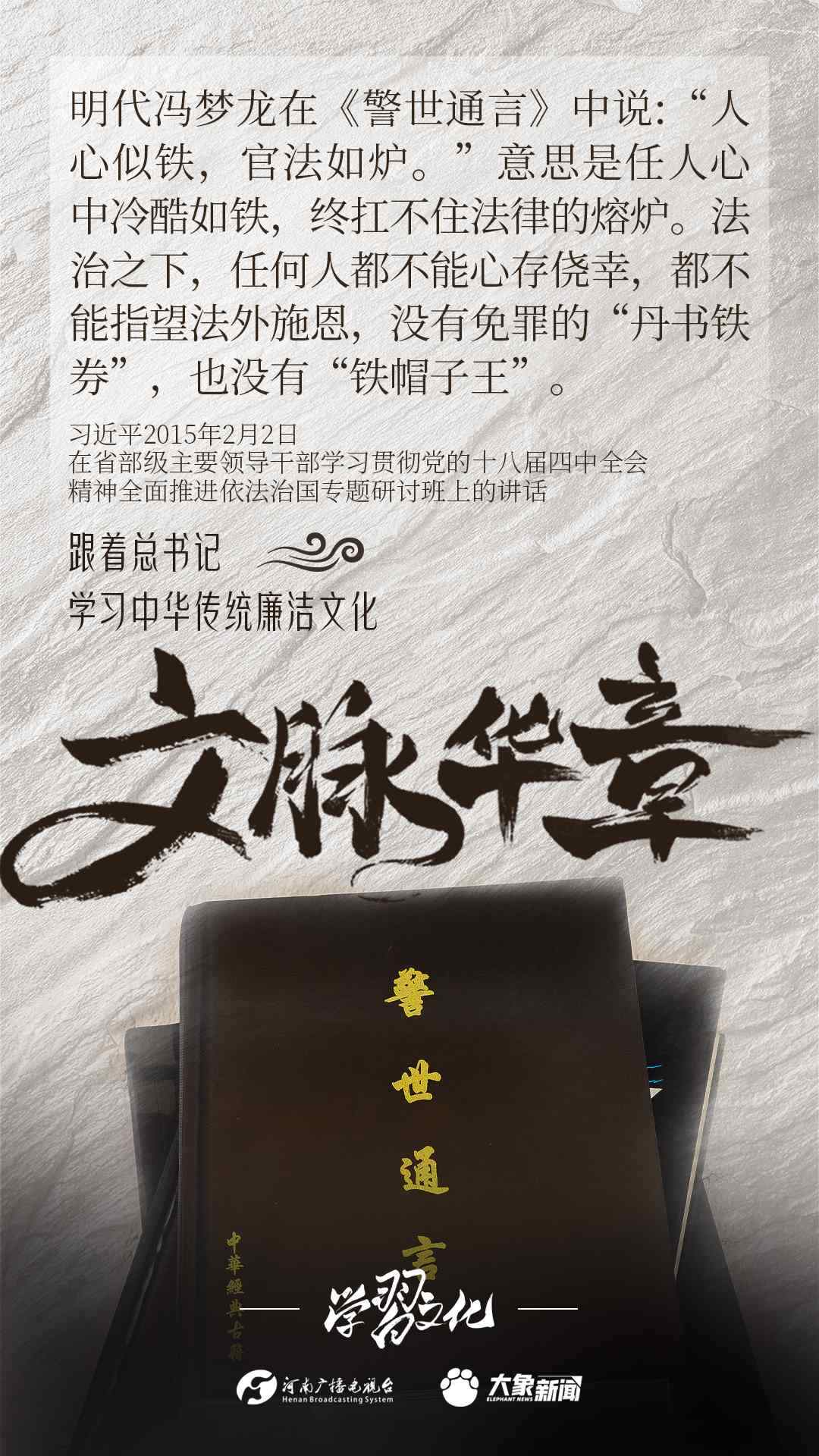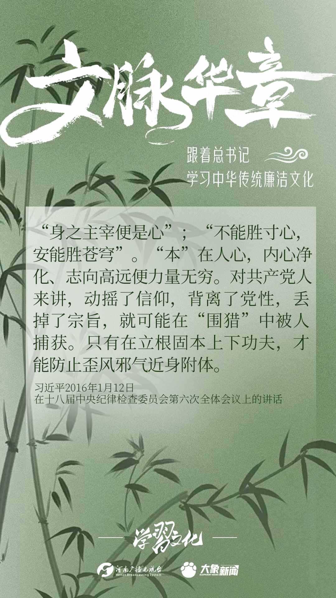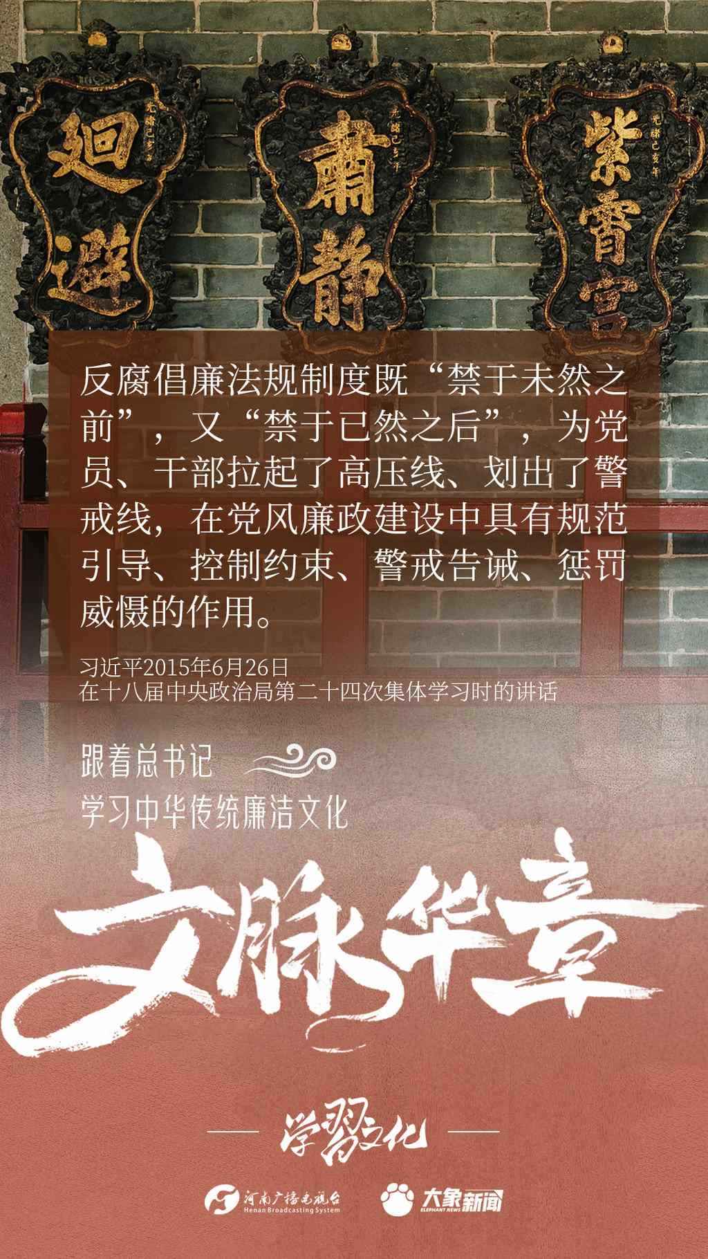 中華優(yōu)秀傳統(tǒng)文化蘊(yùn)含著豐富的廉潔文化,習(xí)近平總書(shū)記曾指出:沒(méi)有中華優(yōu)秀傳統(tǒng)文化、革命文化、社會(huì)主義先進(jìn)文化的底蘊(yùn)和滋養(yǎng),信仰信念就難以深沉而執(zhí)著??倳?shū)記常常引經(jīng)據(jù)典,教育引導(dǎo)廣大黨員干部正心修身,涵養(yǎng)文化,守住為政之本。大象新聞分五期為您梳理,我們一起跟著總書(shū)記學(xué)習(xí)中華傳統(tǒng)廉潔文化。今天推出第四期。