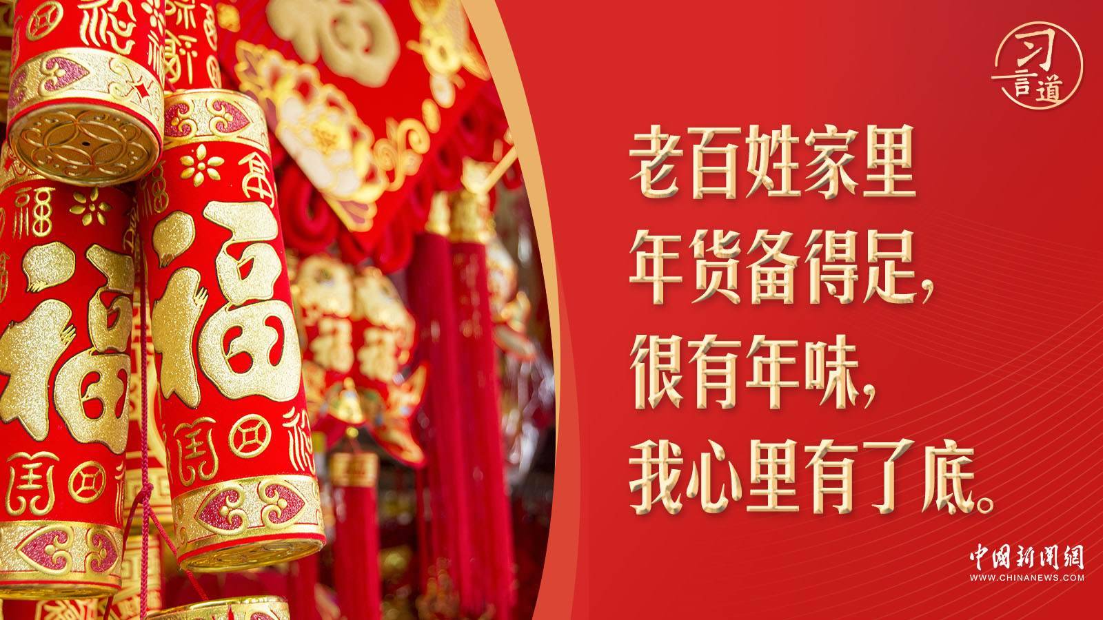 今年春節(jié)前夕,習(xí)近平總書記在遼寧看望慰問基層干部群眾時,察看多家店鋪,頻頻同店主和顧客交流,詳細(xì)了解節(jié)日期間市場供應(yīng)情況,“現(xiàn)在物質(zhì)豐裕,過年團(tuán)圓更要讓大家吃得好、吃得健康。”