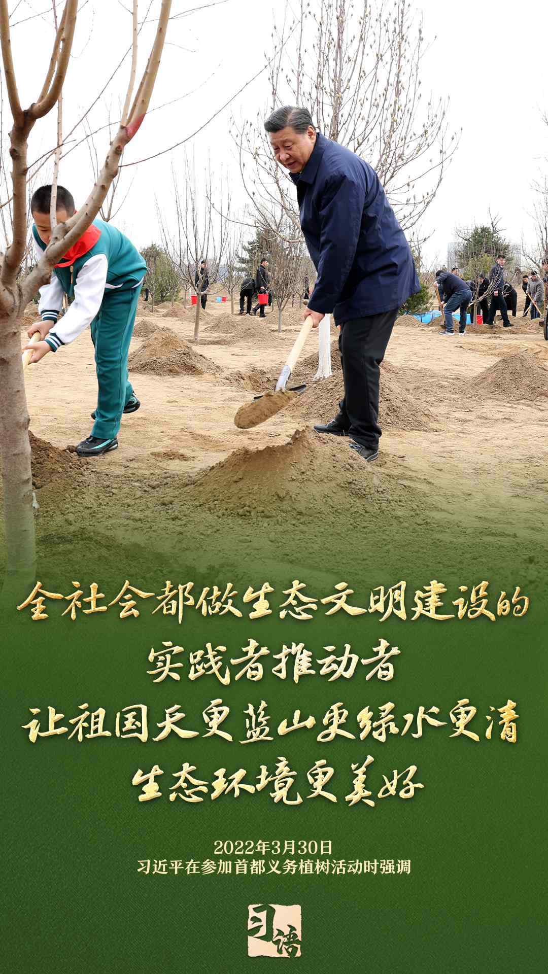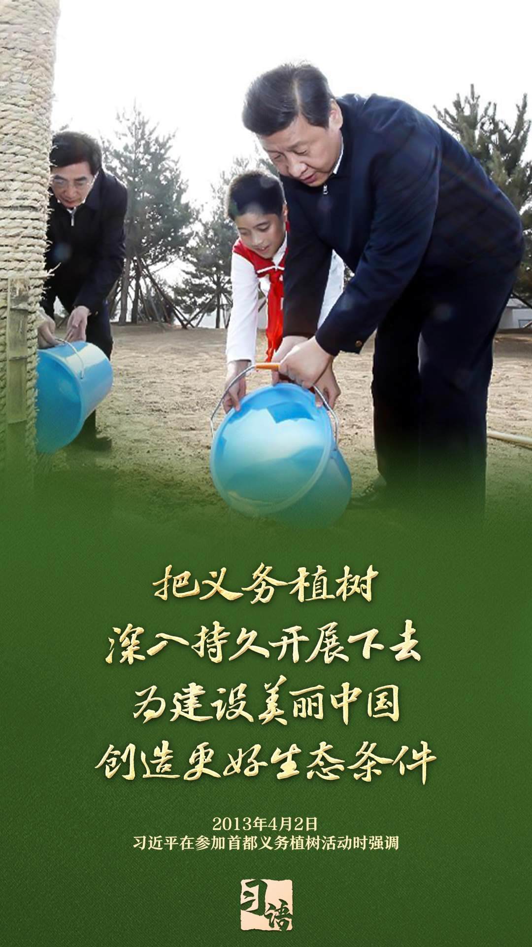 “植樹造林是一件很有意義的事情,是一項功在當代、利在千秋的崇高事業(yè),要一以貫之、持續(xù)做下去?!弊?013年以來的13個春天里,無論晴雨,習近平總書記都會拿起鐵鍬,與干部群眾一起參加首都義務(wù)植樹活動。鏟土造坑、培土圍堰、提水澆灌,總書記身體力行種下綠色的希望,對擴綠興綠護綠、建設(shè)美麗中國提出明確要求。一起學習。
