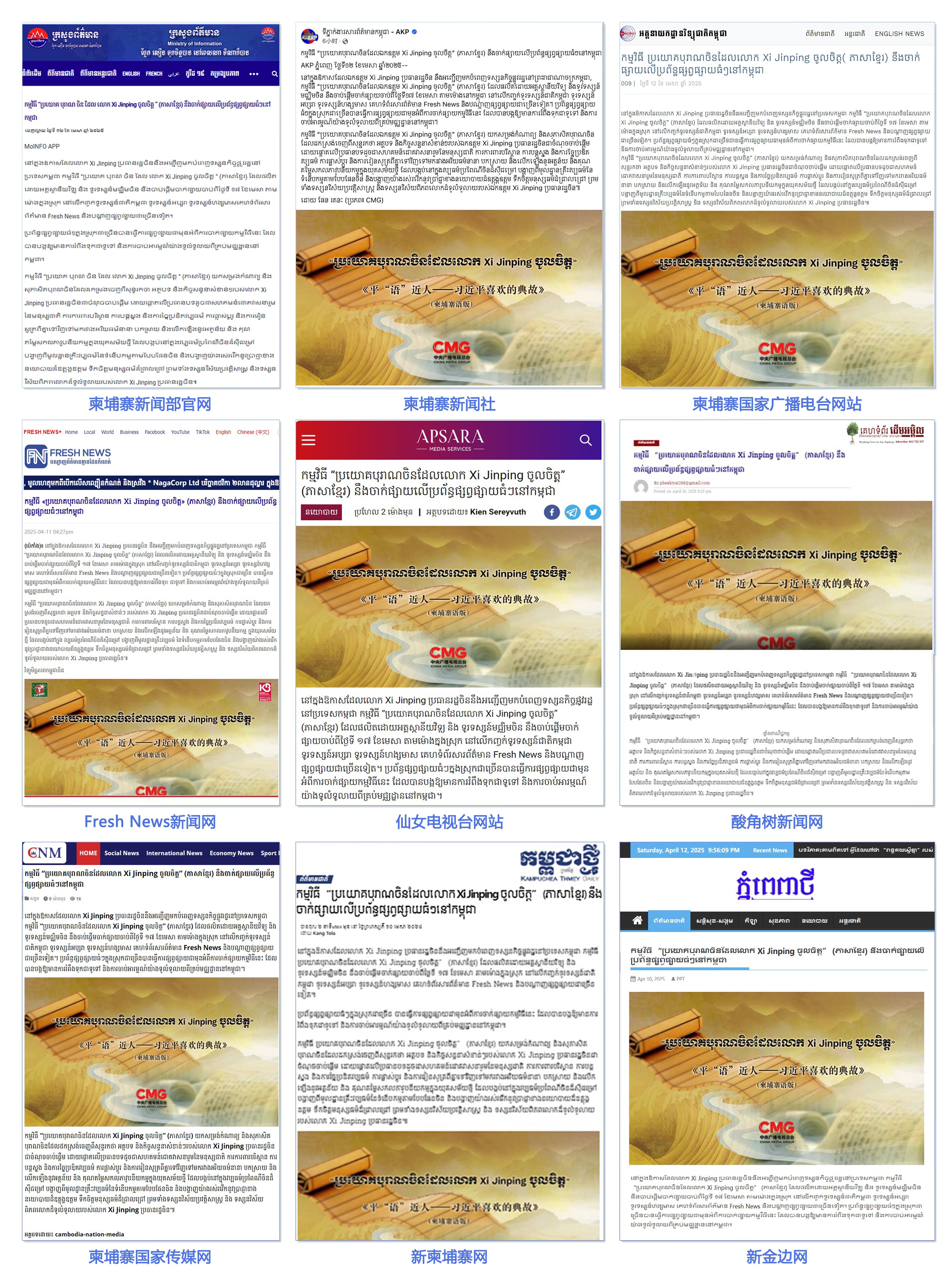柬埔寨新聞部官網、柬埔寨新聞社、柬埔寨國家廣播電臺網站、Fresh News新聞網、仙女電視臺網站、柬中記協(xié)網站、酸角樹新聞網、柬埔寨國家傳媒網、新柬埔寨網、新金邊網、《金邊日報》網等柬主流媒體發(fā)布相關報道。