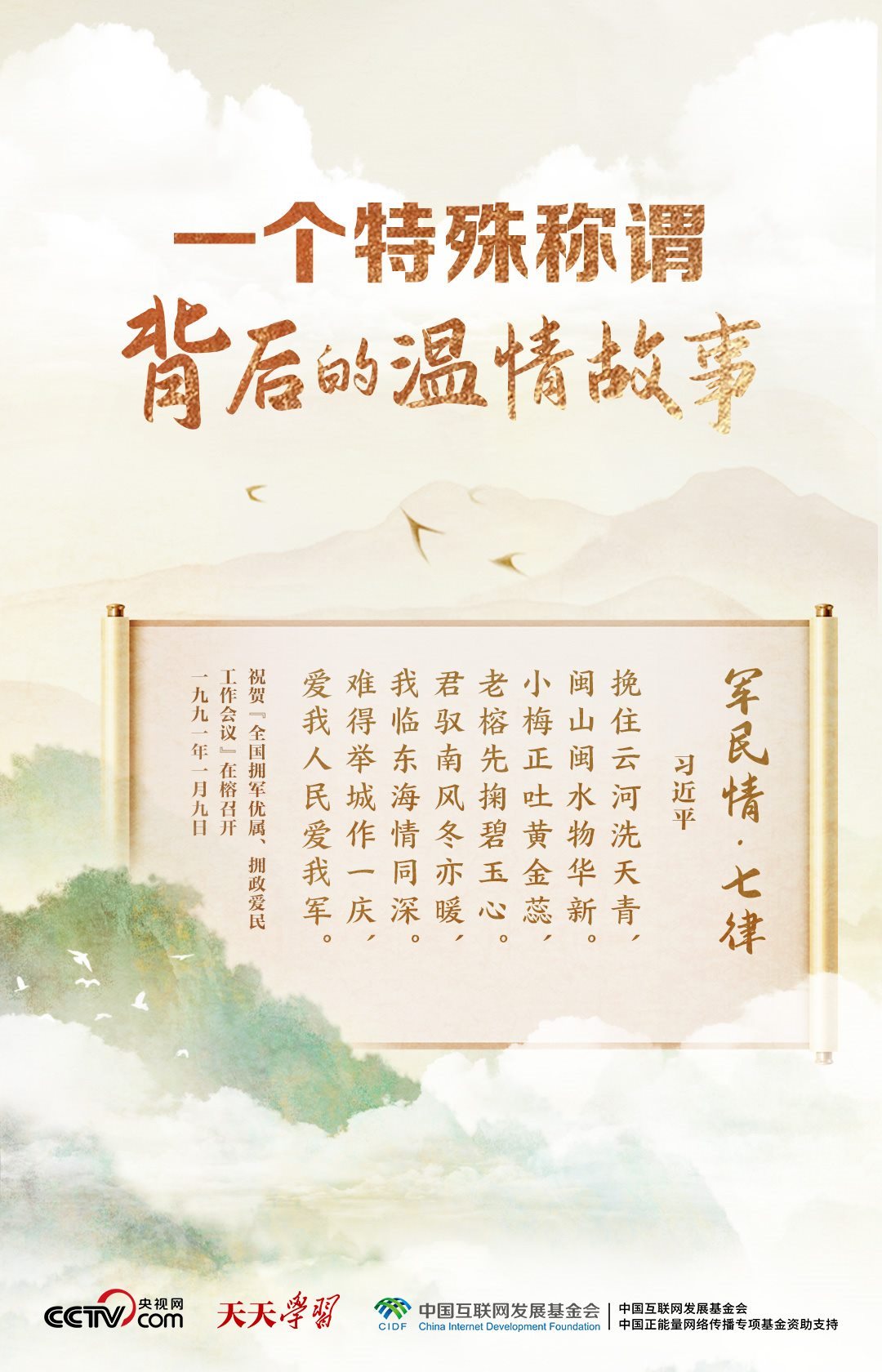 當(dāng)年在福州工作時(shí),習(xí)近平曾賦詩(shī)《軍民情·七律》,表達(dá)了他對(duì)軍隊(duì)的深情:“君馭南風(fēng)冬亦暖,我臨東海情同深。難得舉城作一慶,愛(ài)我人民愛(ài)我軍?!?/p>